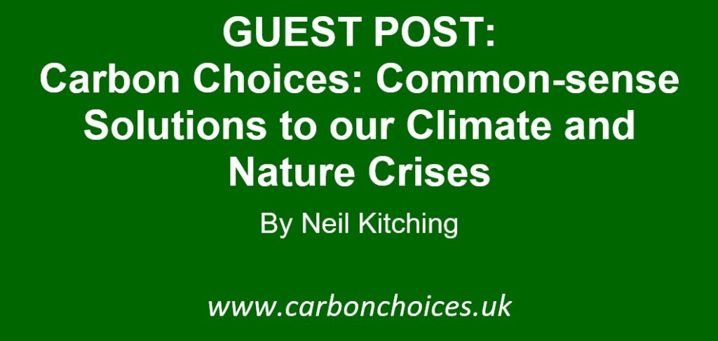 I have written a book, Carbon Choices, on the common-sense solutions to our climate and nature crises. It describes what climate change is, the ten building blocks that are needed to resolve the problem and the solutions related to our day to day lives – our homes, travel, diets and leisure activities.