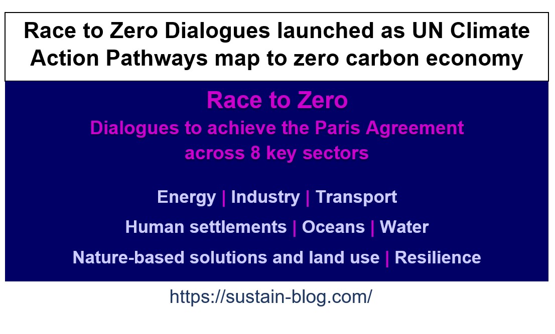 The granular roadmaps will achieve the Paris Agreement across 8 sectors, namely energy, industry, transport, human settlements, oceans, water, nature-based solutions and land use and resilience. These developments will achieve zero emissions by 2050 (i.e. net-zero target) and avert the worst impacts of climate change, according to the Climate Action Pathways report. It was published by the UNFCCC High-Level Climate Champions and the Marrakech Partnership.