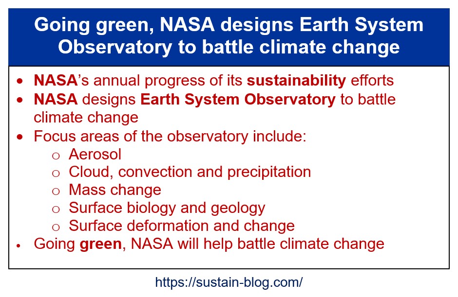 New NASA Earth System Observatory to Help Address, Mitigate Climate Change https://www.nasa.gov/press-release/new-nasa-earth-system-observatory-to-help-address-mitigate-climate-change