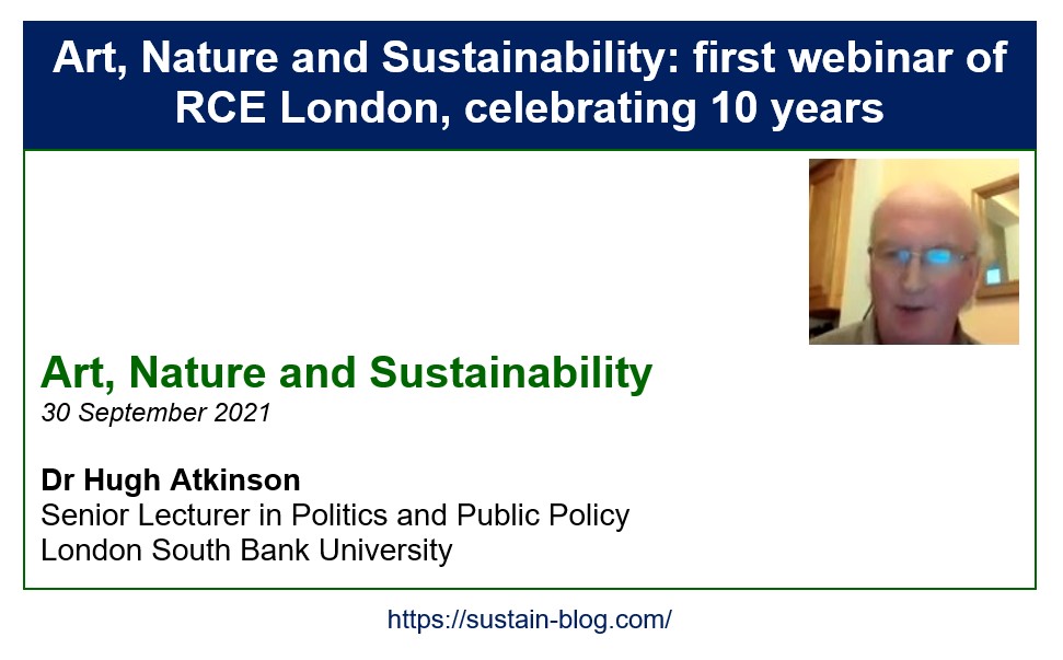 I am not an expert on art, but I became an enthusiastic amateur, said Dr Hugh Atkinson, Senior Lecturer in Politics and Public Policy at London South Bank University, on the inaugural webinar on Art, Nature and Sustainability on 30 September 2021.