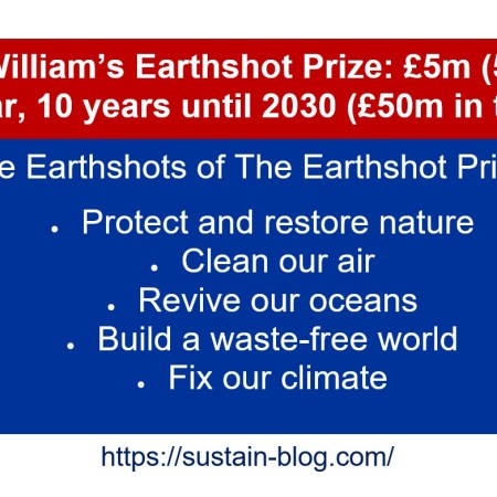 Prince William’s Earthshot Prize: £5m (5 prizes) a year, 10 years until 2030 (£50m in total)